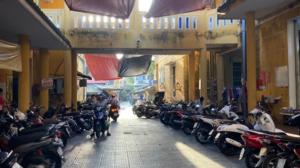 至る所にバイクの駐輪場がある