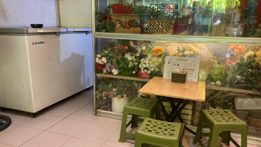 席はベトナムらしいプラスチックの椅子とテーブルが並ぶだけのシンプルな造り。